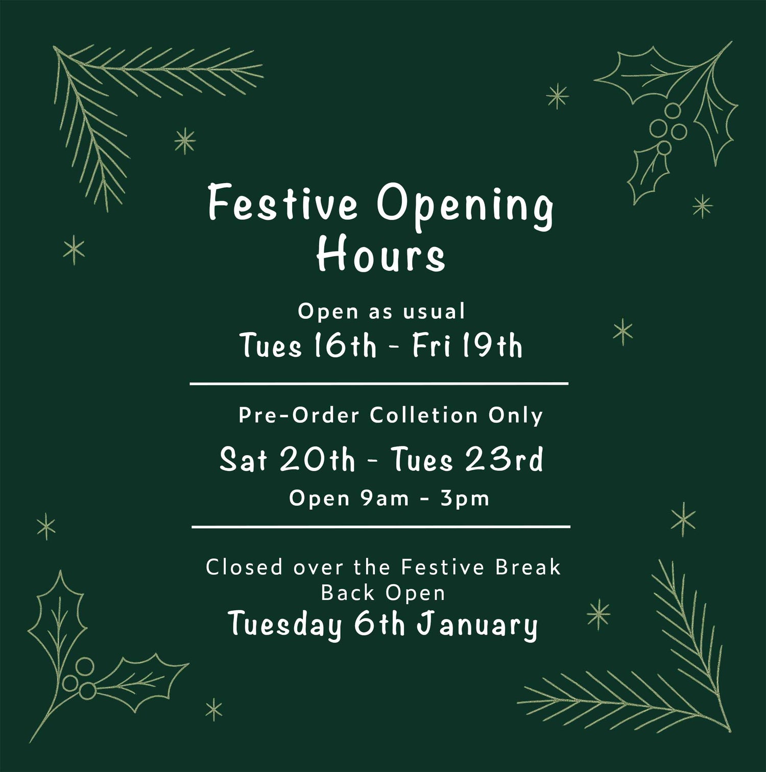 Check out our festive opening hours and don’t miss out—pre-order now to secure all your favourite baked goods.
