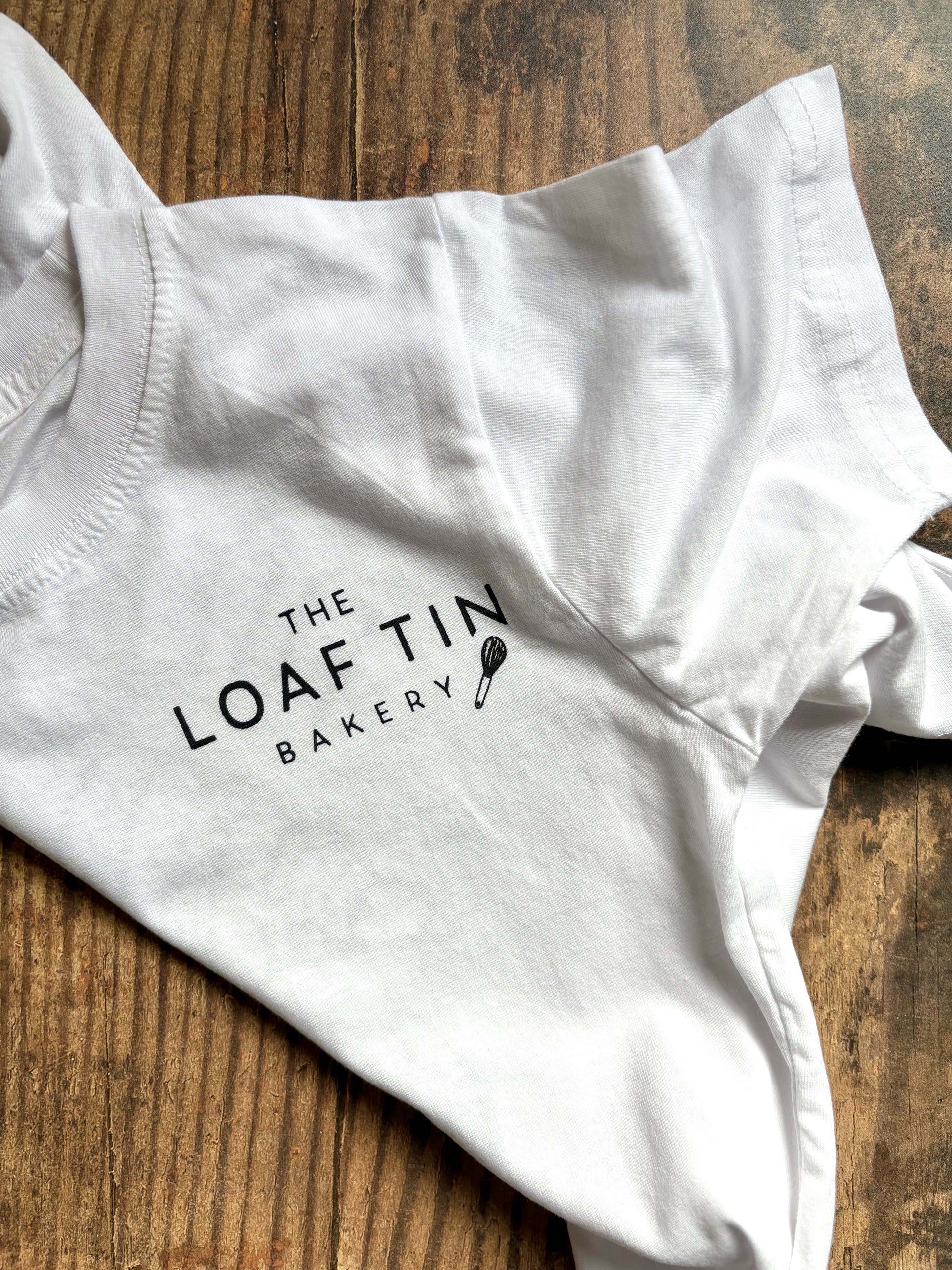 Details: Unisex T-Shirts with Loaf Tin logo featured on the front left with 'Fuelled By Croissants' illustration across the back.